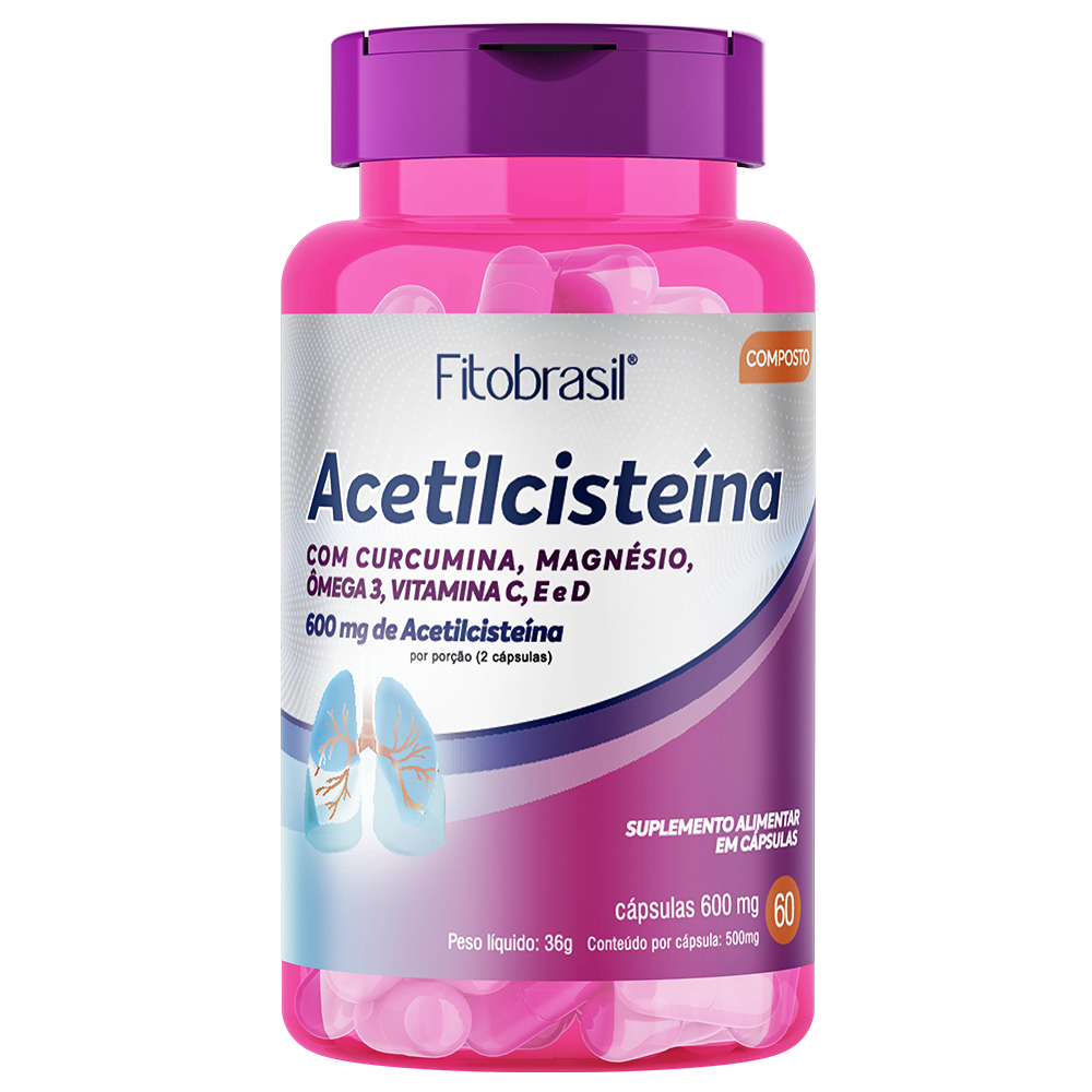 Ingredientes: N-acetilcisteína, ômega 3 em pó, Curcumina em pó, magnésio bisglicinato, ácido ascórbico (vitamina C), acetato de D-alfa-tocoferol (vitamina E), colecalciferol (vitamina D) e dióxido de silício. Cápsulas: Gelatina e água purificada. NÃO CONTÉM GLÚTEN.