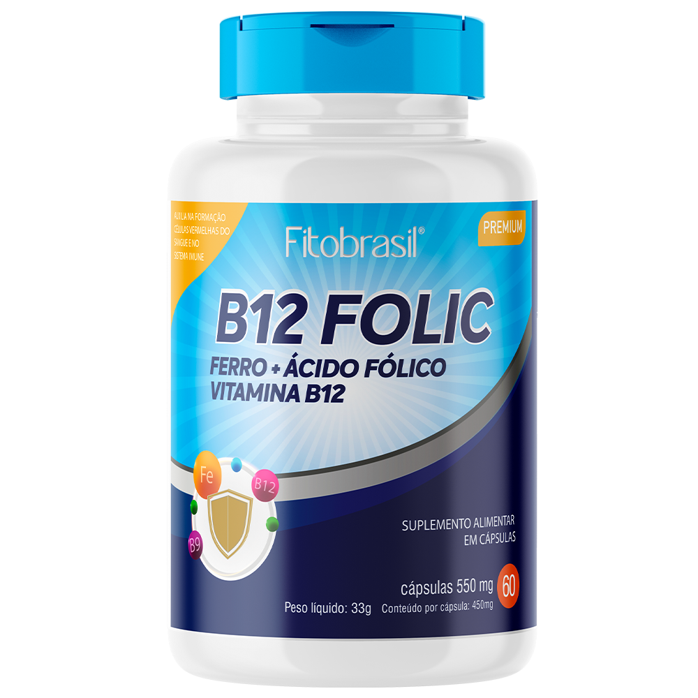 Ingredientes: Vitamina B12, Ácido Fólico (vitamina B9), bisglicinato ferroso, dióxido de silício, estearato de magnésio e silicato de magnésio. Composição da cápsula: gelatina e veículo água. NÃO CONTÉM GLÚTEN
