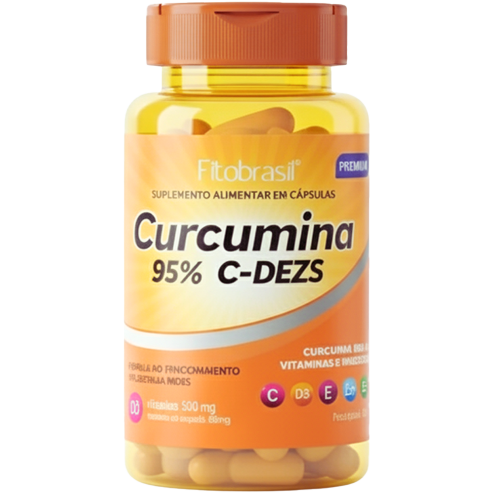INGREDIENTES: Extrato de rizomas de cúrcuma longa (Curcumina), ácido ascórbico (vitamina C), bisglicinato de zinco, acetato de D-alfa-tocoferol (vitamina E), selenito de sódio (selênio), colecalciferol (vitamina D), dióxido de silício, estearato de magnésio e silicato de magnésio.