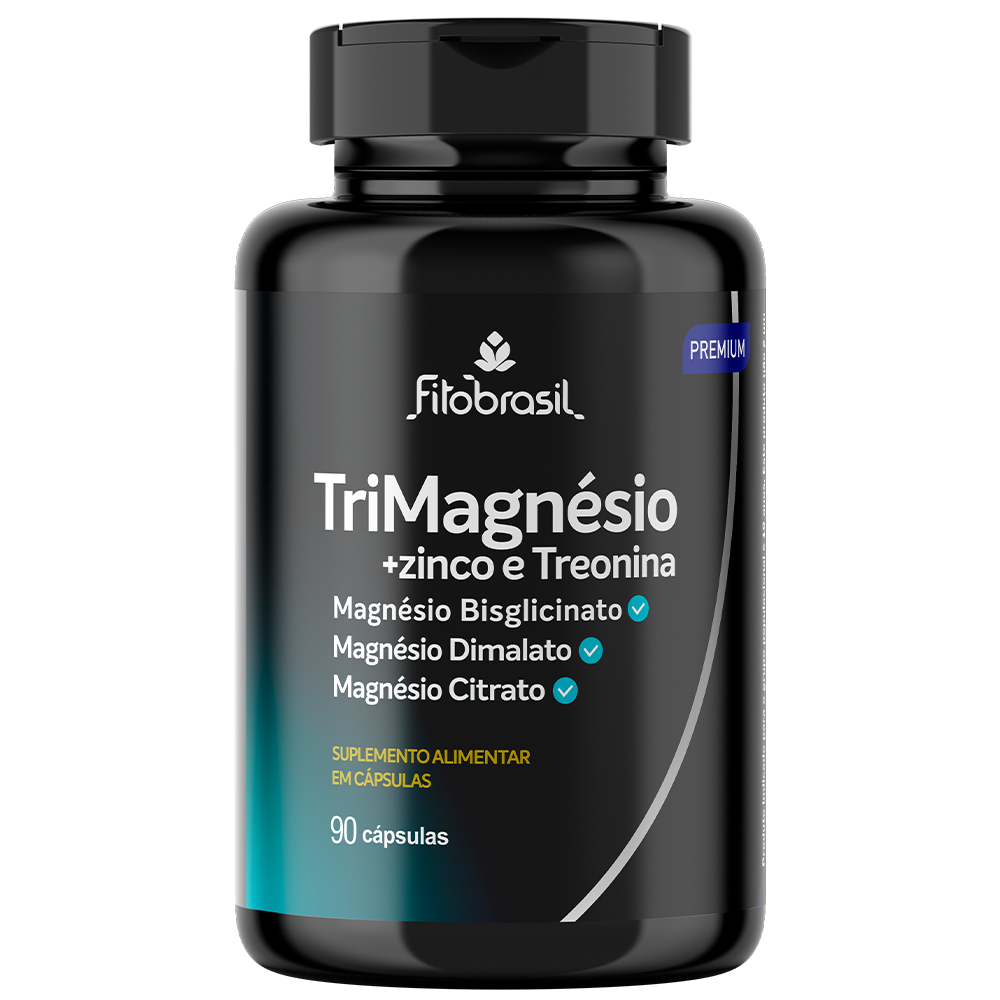TriMagnésio + Zinco e Treonina (Bisglicinato, Dimalato e Citrato) - 90 cáps