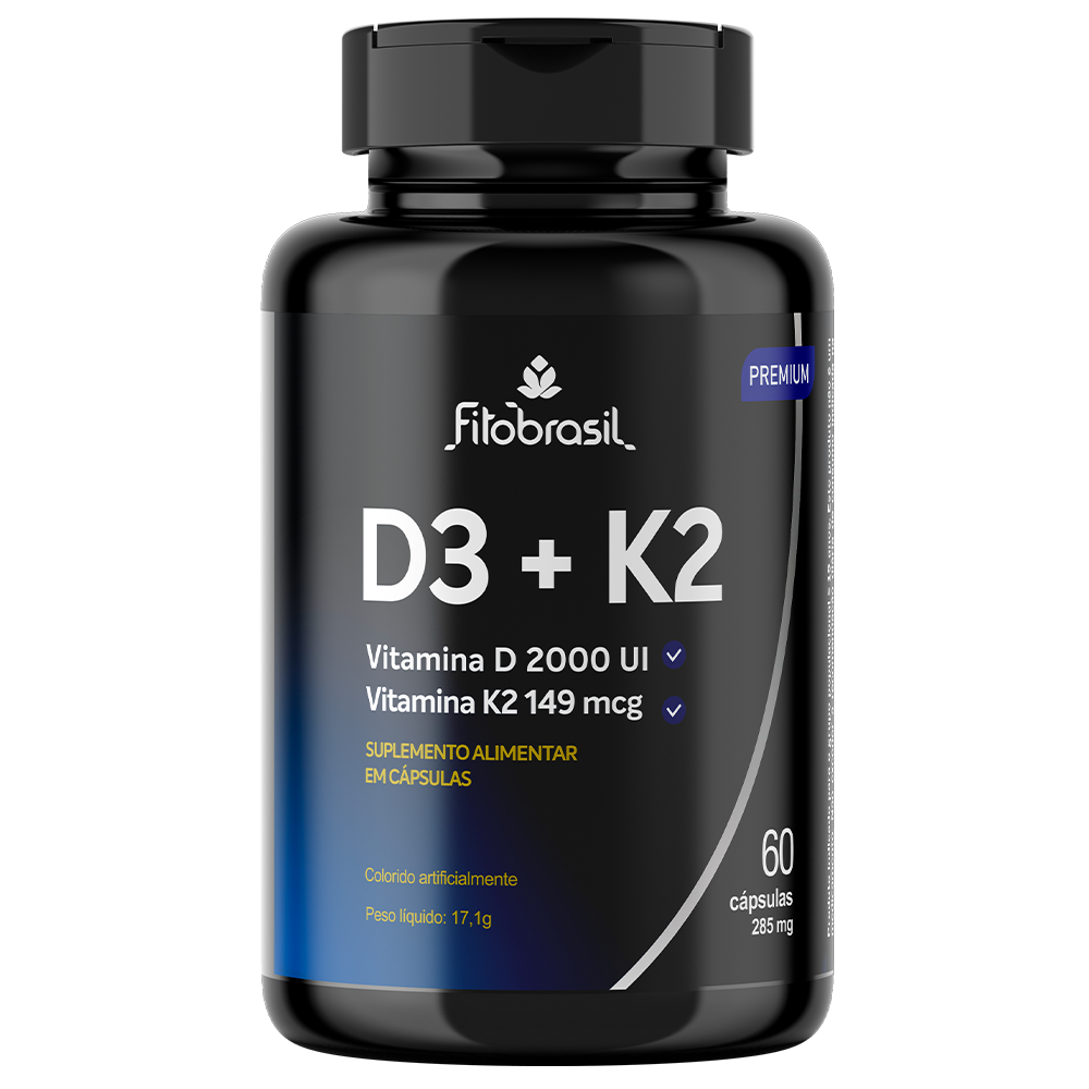 Vitamina D3 2.000 UI + Vitamina k2 Mk-7 149 mcg - 60 cáps - 285mg
